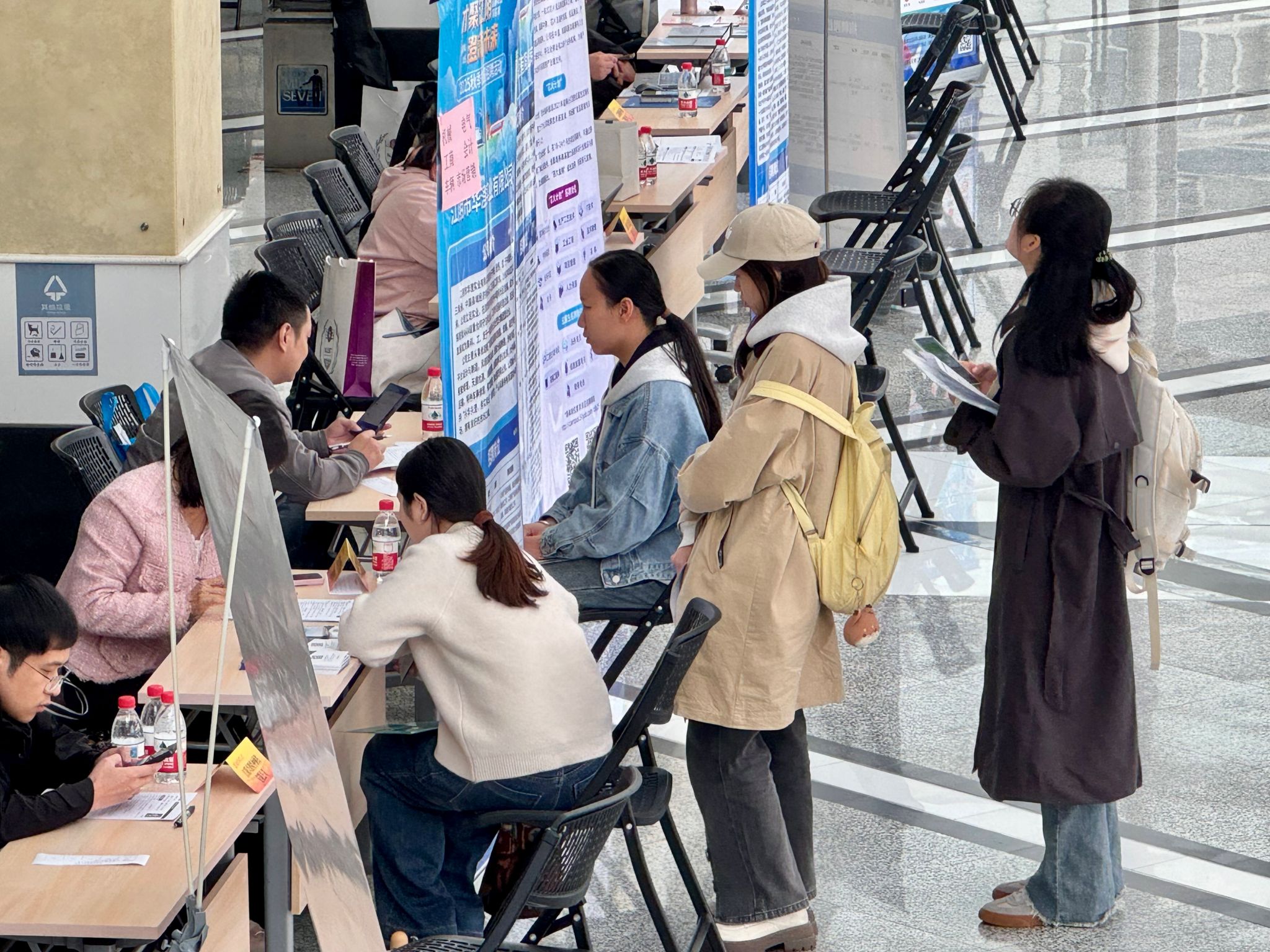 招聘会现场,毕业生们手持精心准备的简历,积极与招聘人员沟通交流,详细咨询岗位要求、发展前景及薪资待遇。招聘人员耐心解答同学们的疑问,并介绍企业的业务范围和企业文化。