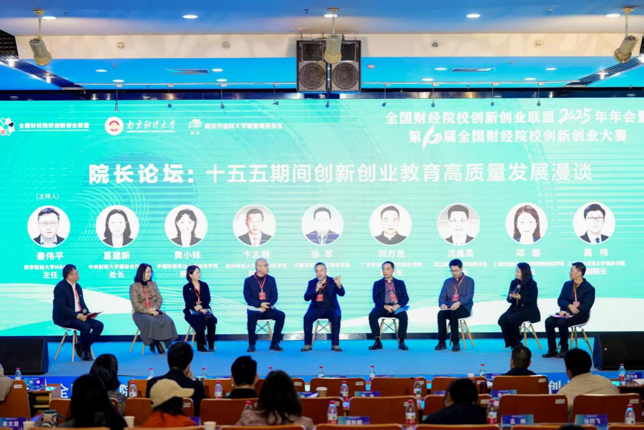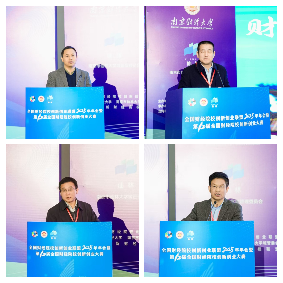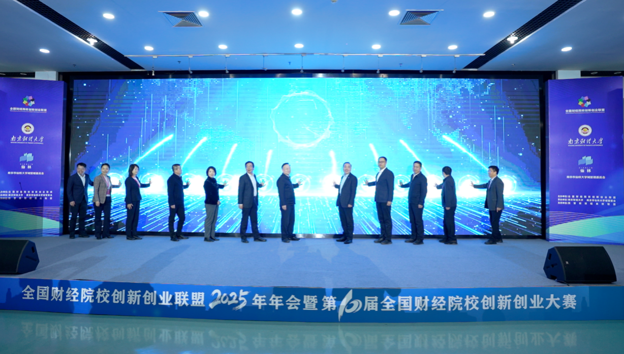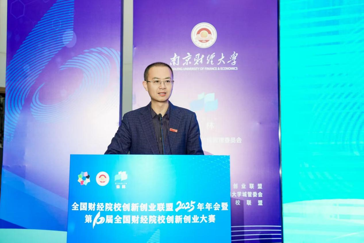 11月28日,全国财经院校创新创业联盟2025年年会暨第十届全国财经院校创新创业大赛决赛在我校仙林校区举办。江苏省教育厅副厅长、党组成员杨树兵,南京市栖霞区人民政府区长、南京经济技术开发区管委会主任、仙林大学城管委会主任王承江,栖霞区人民政府副区长朱翰墨,全国政协常委、我校校长程永波,上海财经大学党委常委、副校长姚玲珍,内蒙古财经大学党委常委、副校长赵国年,东北财经大学党委常委、副校长施锦芳,吉林财经大学党委常委、副校长杨楠,江西财经大学党委常委、副校长贺丹君,西南财经大学党委副书记明海峰,浙江财经大学党委常委、副校长董进才,栖霞区政府办、科技局、人才工作局、高校发展局相关负责人,来自中央财经大学、上海财经大学等46所高校的350余名师生参加会议和决赛。开幕式由我校党委常委、副校长刘衍民主持。