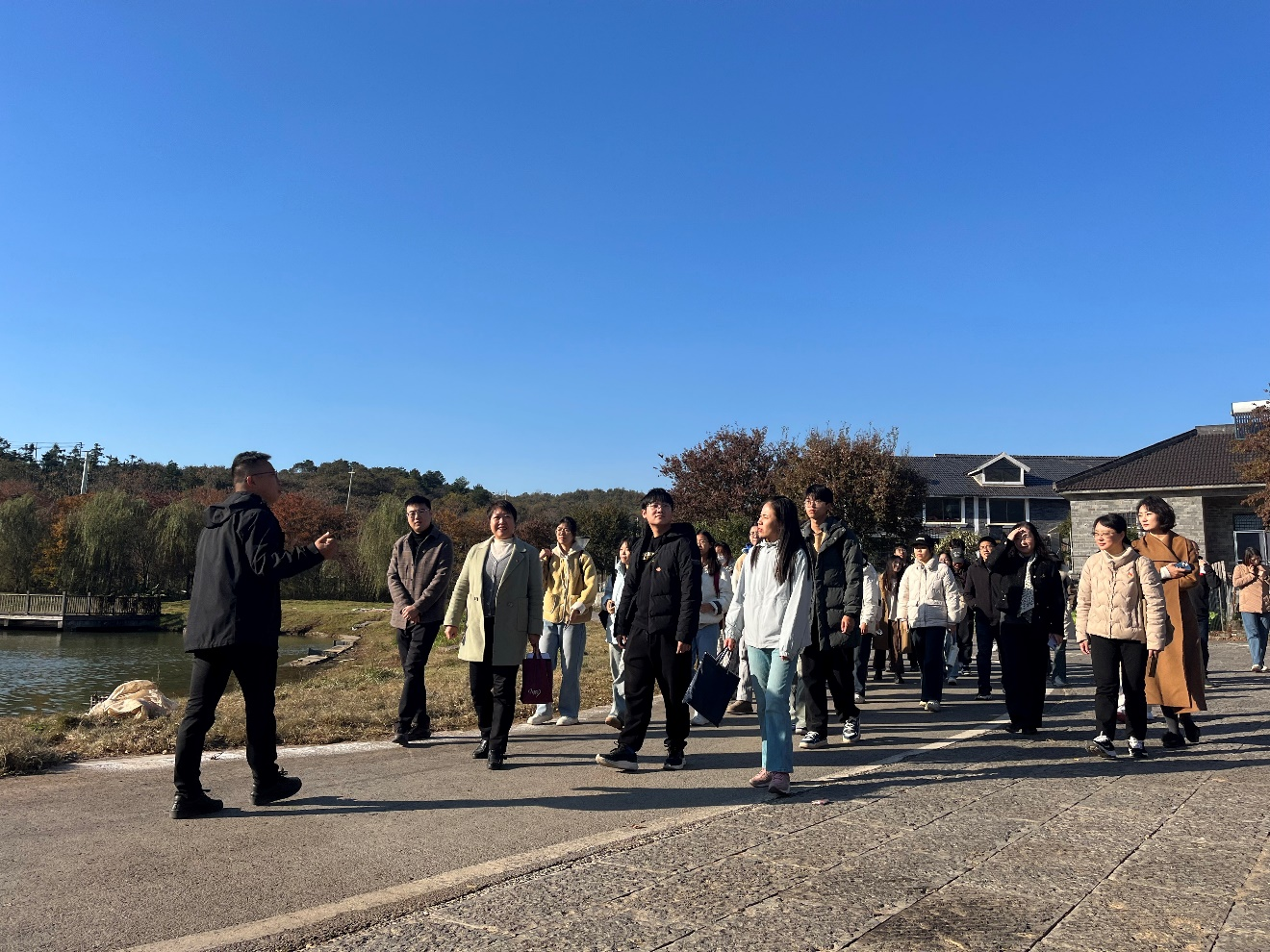 11月19日,南京财经大学党委学工部、学生处组织首届定制新农干班赴句容陈庄开展研学活动。江苏省政府参事陈雯、句容李塔村村委会成员张剑波、校党委学工部部长韩力争及学生处党支部成员、导师等参与,旨在深化党建引领校地融合,赋能乡村振兴实践。