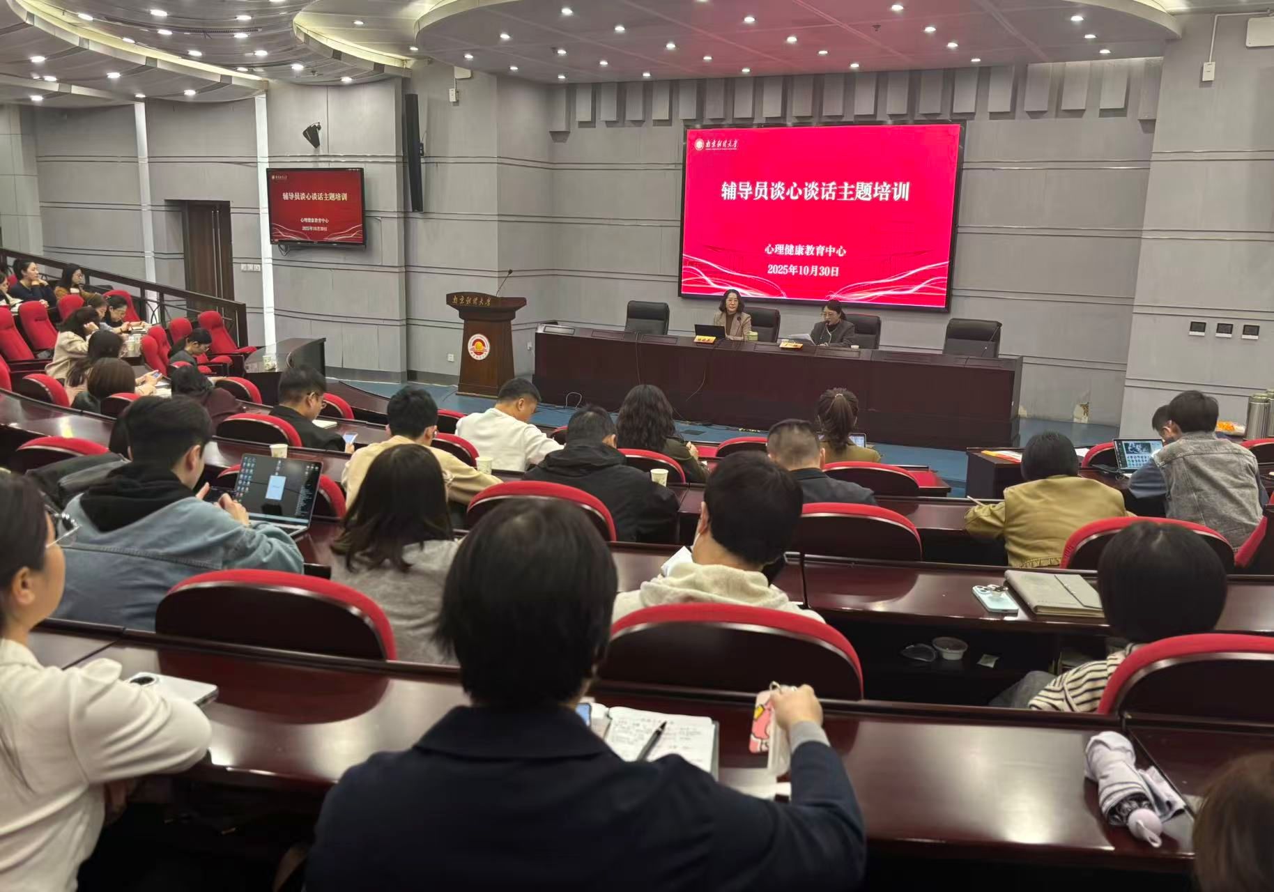 2025年10月30日在行政楼二楼报告厅,我校心理健康教育中心邀请南京邮电大学学生工作处副处长、心理健康教育与咨询中心主任陆晓花副教授,开展题为“你我之间——辅导员谈心谈话训练”的专题培训。全体辅导员参加培训,培训由心理健康教育中心副主任吴垠主持。