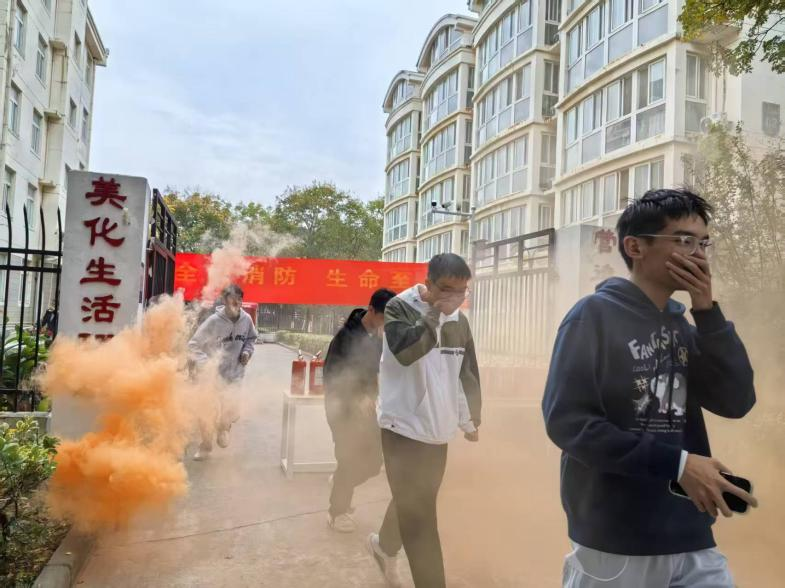 随着警报声响起,逃生演练正式开始。参演学生在工作人员引导下,低姿捂鼻、快速有序撤离至指定安全区域,整个过程紧张而规范。作为新生集中住宿区域,西苑社区将消防安全教育作为常态化工作持续推进,切实筑牢校园安全防线。