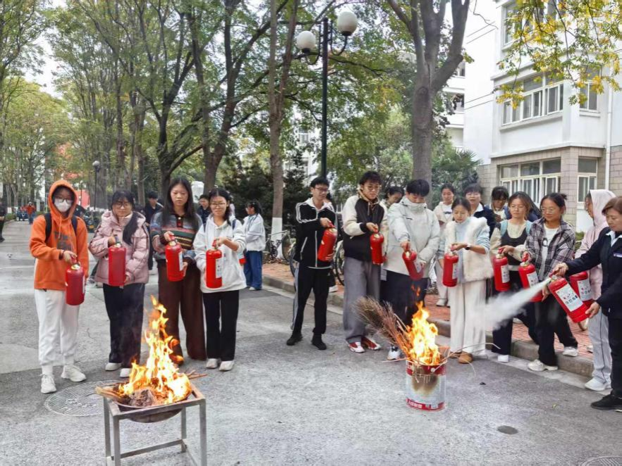 活动伊始,宿管阿姨结合宿舍实际管理,向同学们重点讲解了宿舍用电规范、易燃物品管理、火灾逃生要点等安全知识。保卫处消防科孙浩老师现场介绍常见灭火器的类型与工作原理,并演示正确使用方法。在专业指导下,同学们轮流进行灭火器实操,初步掌握扑救初起火灾的技能。
