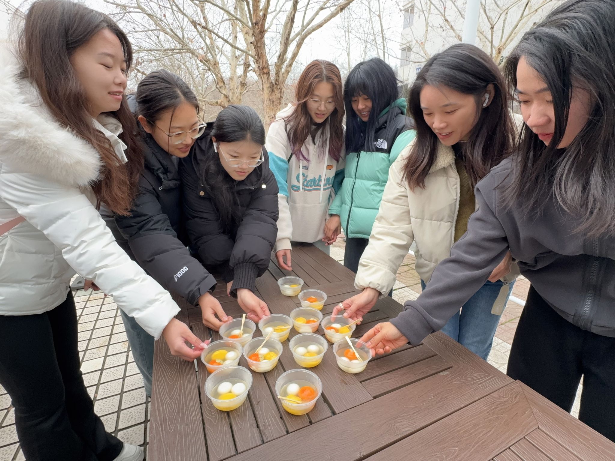 中苑10号站社区活动室内,浙大新宇物业精心筹备的“喜乐元宵”主题活动同样温暖上演。桌上摆满了刚出锅的软糯元宵,同学们围坐在一起,一边品尝着香甜可口的汤圆,一边踊跃参与趣味灯谜竞猜。谜面涵盖传统文化、校园生活、字谜成语等多个方面,大家你一言我一语,争相抢答,现场笑声不断,气氛热烈而融洽。“刚返校就能吃到阿姨们准备的汤圆,还有灯谜可以玩,真的像回到家一样!”一位参与活动的同学开心地说道。